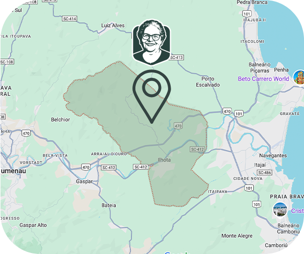 A poucos minutos da BR 470 e BR 101, rodovias de grande fluxo